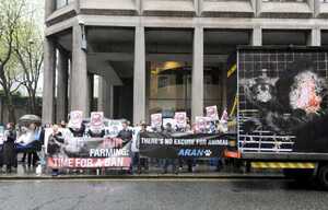 Protestors from animal rights group ARAN outside the Department of Agriculture this afternoon demanding the minister, Simon Coveney, to ensure that Ireland honours its commitment to ban fur farming in the upcoming Animal Health and Welfare Bill.