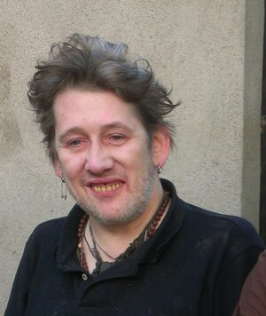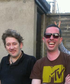 Shane MacGowan and a Scottish friend, Paul Trainer, taking in the late evening air and…hang on
