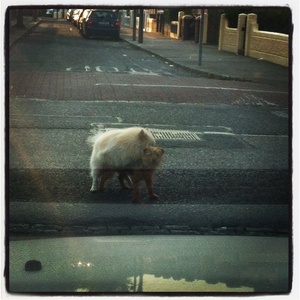 Caledon Road, East Wall, Dublin last Saturday evening. I was driving. It took them 3 minutes to finish. And they didn’t break eye contact with us the whole time.