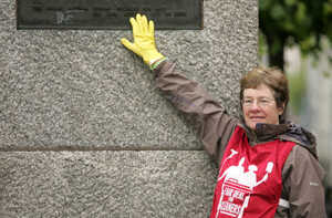 Marking the milestone at Jim Larkin’s statue in O’Connell Street, Dublin were from top: Galyna Korytkory, Iryna Lapshynal and Mary McBride; Juan Denofra; Tanya Maksimora, and Mary Mc Bride.