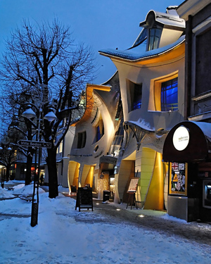 The Krzywy Domek (Crooked House) shopping centre in Sopot, Poland. Designed in 2004 by architects Szotynscy & Zaleski.