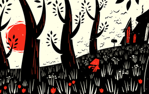 This is one panel from a larger piece titled Rotkappchen. It’s based on the original tale of little Red Riding Hood. I’d been admiring German woodcut illustration and wanted to try work something in a similar style. I begin every assignment with drawing but my illustrations are all finished digitally.