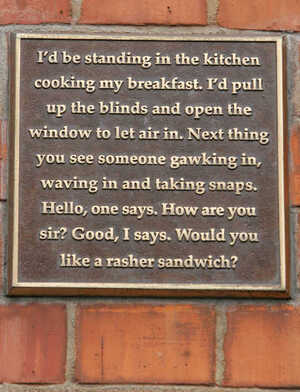 Based on audio recordings of conversations Chris had with residents and people associated with the area, each contributor participated alongside Chris in the selection of a final 20 short texts for use on the 20 bronze plaques.