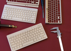 A bluetooth-equipped portable wireless keyboard from French design group Orée – hand-carved from a solid piece of either maple or walnut and available for Mac or PC, $125.