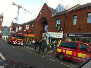 Swan centre rathmines evacuated due to fire. Road impassable . Avoid. No word on injuries . GARDAI and fire brigade on scene