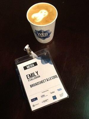 Emily’s credentials and latte at the Dublin Web Summit 2012 in the RDS, Ballsbridge, Dublin, within the last few minutes.