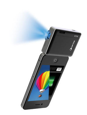 Mobile Cinema i20 ($150) is a 1080p pico-projector for iPad, iPad2, iPhone 3GS, 4 and 4S. Maker Aiptek sez: