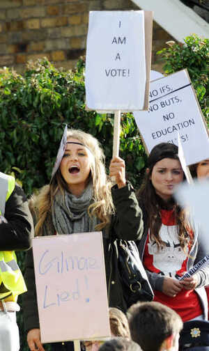USI Pres @john_logue addresses the crowd of students gathered outside Eamon Gilmore’s constituency office. #standuptwitter.com/TheUSI/status/…
