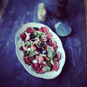 Beef carpaccio with beetroot and fennel on set today for book 4… instagr.am/p/S26NcgPI1Q/