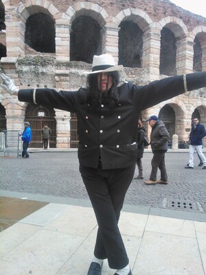Jamon! Admin at 12:23 pm February 18, 2013 We’re asking him to change his ways. Etc. Pat Flanagan writes: So bad, he’s good. Probably the world’s worst Michael Jackson impersonator. Piazza Bra, Verona [Italy], yesterday afternoon. FacebookTwitterPinterestSponsored Link