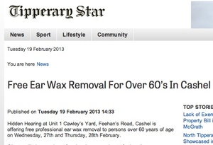 Anything Good In The Tipperary Star? Admin at 4:54 pm February 19, 2013 What? Free ear wax removal for pensioners. What? Ear wax removal. They’re ending the beer tax? Ear wax. Don’t mind if I do, two sugars please. Etc. FacebookTwitterPinterestSponsored Link Related posts: Anything Good In The Evening Herald? Anything Good In The Cork News? Anything Good In The Western People? Anything Good In The Irish News?