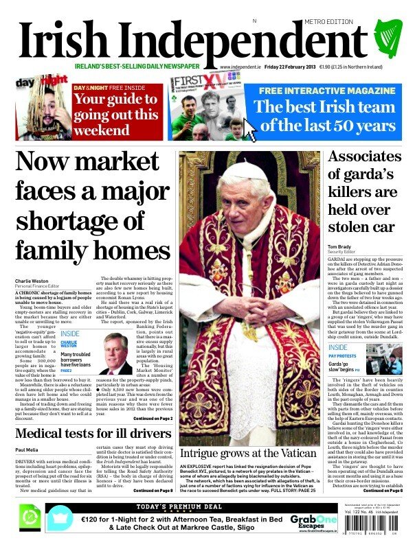 De Papers Admin at 11:48 pm February 21, 2013 Covers to Broadsheet@broadsheet.ie Via Mike Hogan and Padraig Glynn FacebookTwitterPinterestSponsored Link Related posts: De Wednesday Papers De Wicklow Papers Are Here De Hedald And De Echo De Sunday Papers