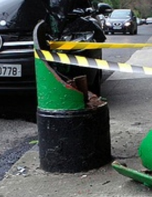 Avoca Avenue. Blackrock [Co Dublin]. A neighbour told me it took place last night, but I think he may be mistaken as we heard a loud noise this morning around 6 am. I photographed it around 9.30 and shortly afterwards the tow truck arrived.