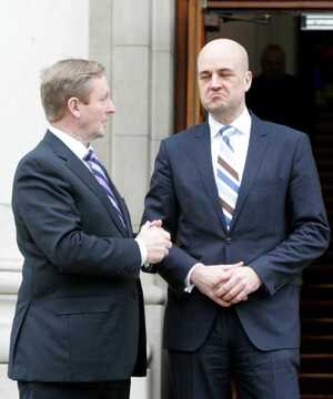 Little Britain star Swedish Prime Minister Fredrik Reinfeldtldt with Enda Kenny at government buildings earlier.