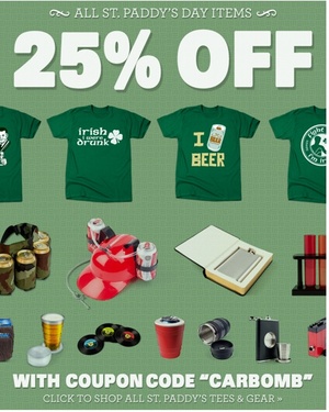 Got this in an email newsletter from BustedTees, a T-shirt site connected to the American website CollegeHumor. At first I was happy to see that they’d spelt St Paddy rather than ‘St Patty’ – and then I saw what the coupon code was.