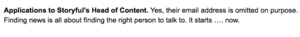 Storyful Is Hiring Aaron McAllorum at 2:46 pm March 7, 2013 Hang on. There’s a catch. Ah, man. Karl! Job description (Storyful) FacebookTwitterPinterestSponsored Link Related posts: Job Application Like A Boss (And Sh*t) The Greatest Job Title In The World Which Professions Have The Most (And Fewest) Psychopaths? Please State The Nature Of The Medical Emergency