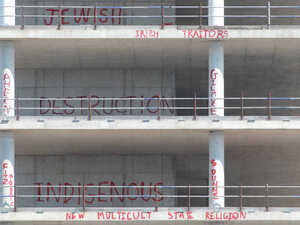 Graffiti on the Anglo shell on the quays, Dublin, today.