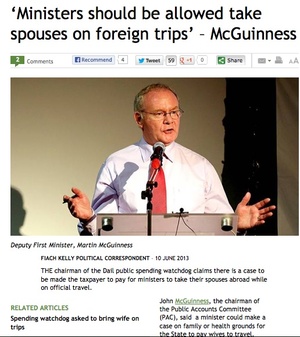 ‘Ministers should be allowed take spouses on foreign trips’ – McGuinness (Fiach Kelly, Independent)