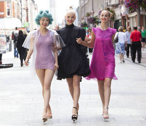 Models, from left: Yomiko Chen, Teo Sutra and Thalia Heffernan showcase three of the eight final designs of the Persil Irish Fashion Awards 2013,this afternoon. A winner, who receives €10,000, is announced tonight.