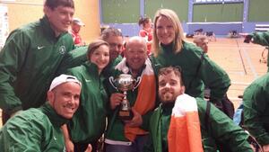 Members of the Ireland Wheelchair Rugby team with the first Wheelchair7s Triple Crown trophy after beating Scotland 30-8 in Vichy, France, this evening.