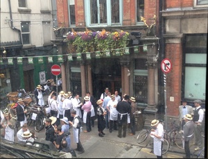 Outside The Stag’s Head, Dame Court. Bill Cullen (in black) apparently.