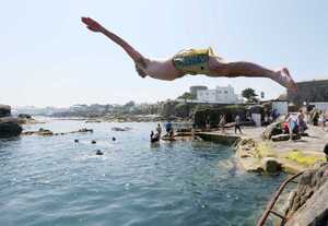 Obligatory swan-dive-into-belly-flop photo from the Forty Foot, Sandycove, Co Dublin.