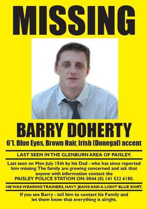 Barry, who turned 25 last Thursday, is from Carndonagh, Co. Donegal and was last seen by his father in the Glenburn area of Paisley, southwest of Glasgow in Scotland, where he has been living off and on since he was 18.