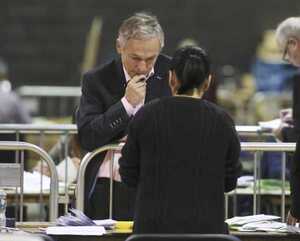From top: Richard Bruton, Mary Lou McDonald, a count volunteer and former Dublin Mayor Michael O’Halloran.