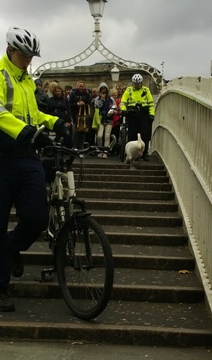 Follow The Leda Admin at 7:16 am October 15, 2013 Sara Murphy writes: A disorientated swan got an escort across the [Ha’penny] bridge [Dublin, yesterday] from two slightly nervous looking guards and drawing a gaggle of paparazzi behind them. FacebookTwitterPinterestSponsored Link Related posts: Gurn, Interrupted Wonderful Trees FIGHT! Frog Rodeo