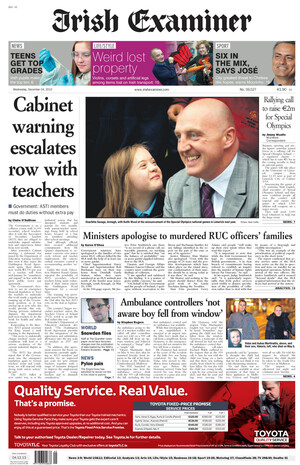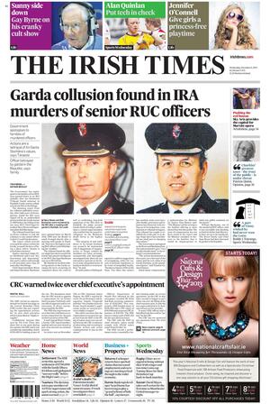 De Wednesday Papers Admin at 10:48 pm December 3, 2013 Covers to broadsheet@broadsheet.ie Thanks Iain Henderson, Patrick Conboy, Meliosa Fitzgibbon, Brian Oliver, Enda Bolger, Patrick Fagan and Joe Donnelly. FacebookTwitterPinterestSponsored Link Related posts: De Wednesday Papers De Monday Papers De Monday Papers De Sunday Papers