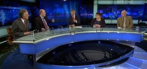 (From top: Members of the American Ireland Fund, the new O’Brien Centre for Science in UCD, Niall Crowley and Seamus Mulcrony and last night’s Prime Time panel in full)