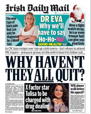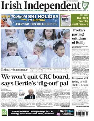De Tuesday Papers Admin at 10:39 pm December 9, 2013 More to follow. Covers to broadsheet@broadsheet.ie Thanks Darragh Clifford, Colin McGann, Garrett Rowe, Enda Bolger and Joe Donnelly. FacebookTwitterPinterestSponsored Link Related posts: De Wednesday Papers De Monday Papers De Monday Papers De Sunday Papers