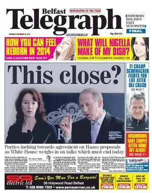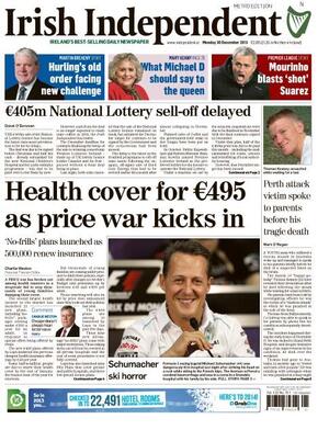 De Monday Papers Admin at 1:24 am December 30, 2013 Covers to broadsheet@broadsheet.ie Thanks Colin McGann, Padraig Glynn, Dermot Ahern, Garrett Rowe, Paul Murphy FacebookTwitterPinterestSponsored Link Related posts: De Wednesday Papers De Monday Papers De Monday Papers De Sunday Papers