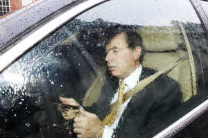 [Justice Minister Alan Shatter arriving at government buildings, Merrion Street this morning to brief the cabinet on the whistleblower/GSOC crisis.]