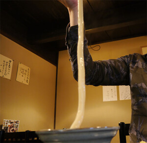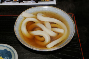 Tawaraya noodle shop in Kyoto serves an udon noodle dish that contains one long thick noodle.