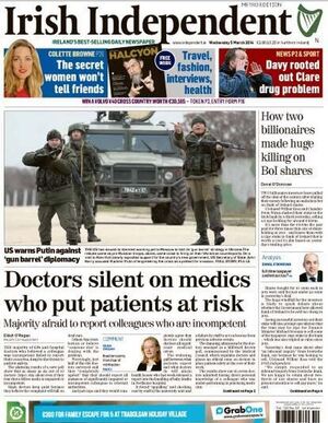 De Wednesday Papers Admin at 10:54 pm March 4, 2014 More to follow Thanks Garrett Rowe, Meliosa Fitzgibbon, Niamh McEneaney, Alan Caulfied, Nick Sutton, Dermot Ahern and Iain Henderson. Covers to broadsheet@broadsheet.ie FacebookTwitterPinterestSponsored Link Related posts: De Sunday Papers Are Here De Saturday Papers De Friday Papers De Sunday Papers