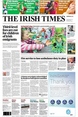 De Tuesday Papers Admin at 10:43 pm March 17, 2014 More to follow. Thanks Colin McGann, Colm Heaney, Kevin Cramer, Mick Crowley, Wroxy Meredith and Nick Sutton. Covers to broadsheet@broadsheet.ie FacebookTwitterPinterestSponsored Link Related posts: De Sunday Papers Are Here De Saturday Papers De Friday Papers De Sunday Papers