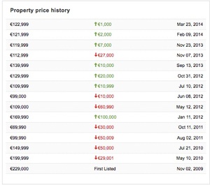 [The recent price history of a one-bedroom flat in The Maltings apartment block (top) in John Bonham Street, Dublin]