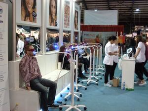 Androids powering-up anonymous folk having their teeth whitened at the Ideal Home Show at RDS Simmonscourt earlier today.