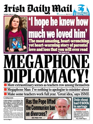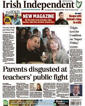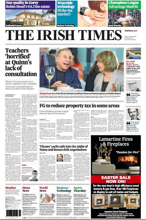 De Thursday Papers Admin at 11:05 pm April 23, 2014 More to folly. Covers to broadsheet@broadsheet.ie Thanks Enda Cunningham, B Malone, Brian Oliver, Enda Bolger, Meliosa Fitzgibbon, Niamh McEneaney, Kevin Cramer and Nick Sutton. FacebookTwitterPinterestSponsored Link Related posts: De Sunday Papers Are Here De Tuesday Papers De Tuesday Papers De Sunday Papers