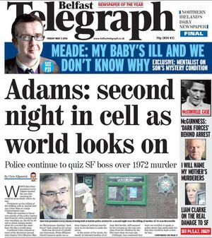 De Friday Papers Admin at 11:12 pm May 1, 2014 More to follow. Covers to broadsheet@broadsheet.ie Thanks Garrett Rowe, Enda Cunningham, Meliosa Fitzgibbon, Enda Bolger, Maria Daly and Neil Henderson FacebookTwitterPinterestSponsored Link Related posts: De Sunday Papers Are Here De Cork Local Papers Are Here De Friday Papers De Sunday Papers