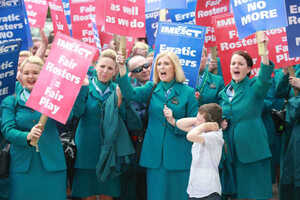 [Aer Lingus cabin crew on strike last month]