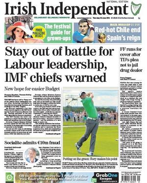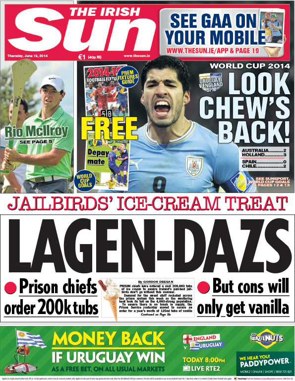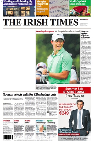 De Thursday Papers Admin at 11:19 pm June 18, 2014 More to follow. Thanks Nick Sutton, Brian Hayes Curtin, Colm Heaney, Enda Bolger and Enda Cunningham. Covers to broadsheet@broadsheet.ie FacebookTwitterPinterestSponsored Link Related posts: De Thursday Papers De Friday Papers De Wednesday Papers De Sunday Papers