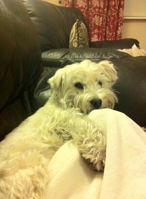 “My mother’s little male West Highland “Luca” was lost last night near Springfield Road/Rathfarnham Shopping Centre in Templeogue [Co Dublin] and is missing for at least 12 hours at this stage. His distinguishing feature is that his ears don’t stand up and are permanently flopped down as in the picture (above).”