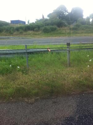 I was driving home on the M7 yesterday evening when traffic came to a standstill. I was looking around and saw this to my right. Looks worse for wear.