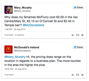 It’s not just Temple Bar or McDonalds. I found I could get a particular pair of shoes in Office for €20 cheaper in their Henry St store compared to their Grafton St store.