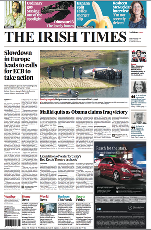 De Friday Papers Admin at 10:52 pm September 25, 2014 MORE to folly. Thanks Enda Cunningham, Meliosa Fitzgibbon, Nick Sutton, Enda Bolger, Brian Oliver and Kevin Cramer. Covers to broadsheet@broadsheet.ie FacebookTwitterPinterestSponsored Link Related posts: De Friday Papers De Friday Papers