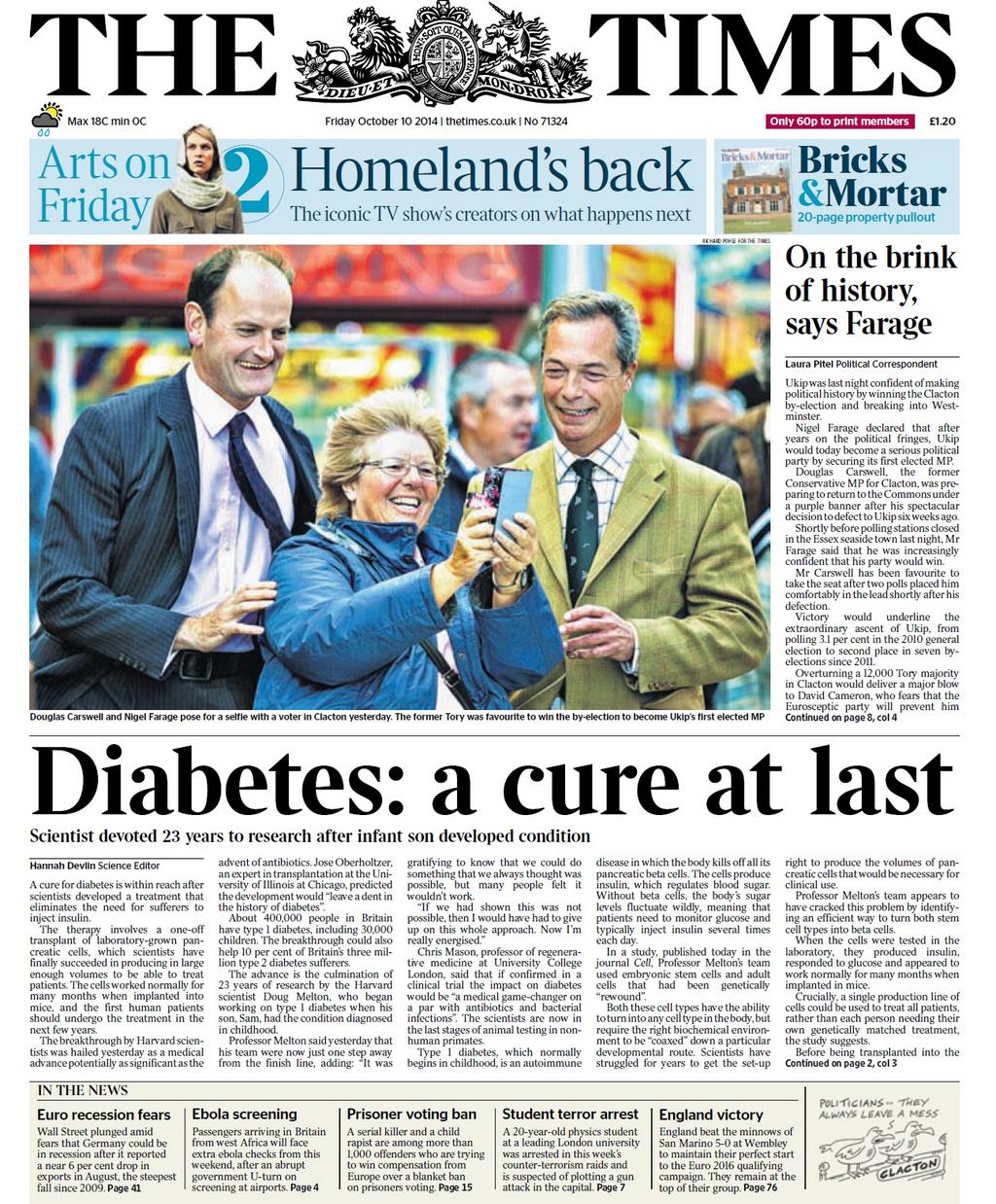 Fifty quid says it’s not a cure for diabetes. Or at least not as the lay person would understand it. Plus it probably won’t treat type II. Or gestational diabetes. Or CF relates diabetes. Or pancreatic diabetes.