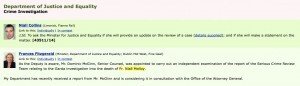 Fr Niall Molloy (top) and Minister Fitzgerald’s Dail answer Justice Minister Frances Fitzgerald confirming that her department has received the long-awaited report into the 1985 death of Fr Niall Molloy. More as we get it. Previously: Fr Niall Molloy on Broadsheet Campaign for Fr Niall Molloy Via KildareStreet.com UPDATE: “I Just saw your report on … Continue reading The Report Is In