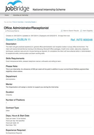 Dept of Social Protection are advertising for an intern to work in their “busy office environment”. Presumably the job will entail sorting through all those JobBridge applications coming in?
